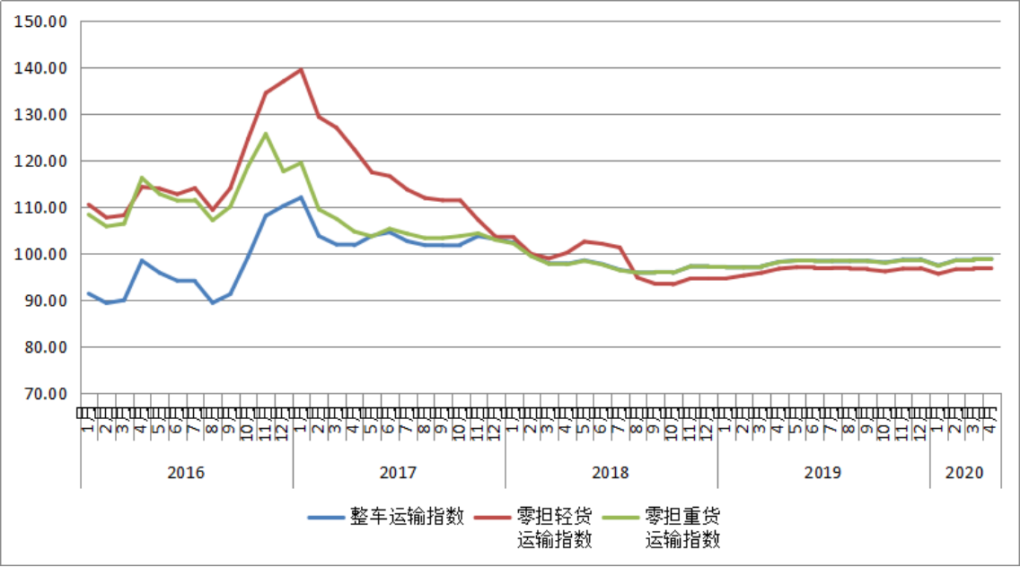 2020年4月份,由中國物流與采購聯合會和林安物流集團聯合調查的中國公路物流運價指數為98.5點,與上月相比基本持平,比去年同期增長0.6%。月內各周指數總體平穩,其中第一、三、四周環比回升,第二周環比回落。