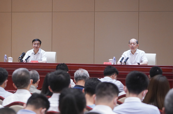 7月17日上午,由中央宣傳部、中央黨史和文獻研究院等共同舉辦、國務院國資委承辦的學習貫徹習近平總書記“七一”重要講話精神系列專題宣講報告會(第七場)在中國共產黨歷史展覽館舉行。求是雜志社原社長李捷作報告,國資委黨委委員、副主任譚作鈞主持報告會。