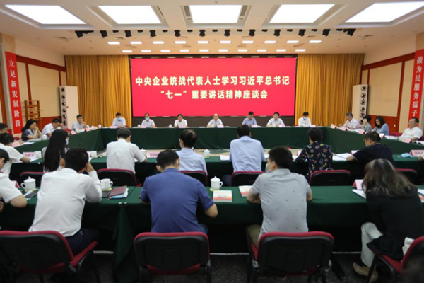 會議認為,深入學習領會、堅決貫徹落實習近平總書記“七一”重要講話精神是當前和今后一個時期中央企業(yè)統(tǒng)一戰(zhàn)線的重大政治任務。會議認真總結(jié)、充分肯定新時代中央企業(yè)統(tǒng)戰(zhàn)工作取得的新成效和統(tǒng)戰(zhàn)代表人士在建言獻策、履行政治責任、投身重大工程項目等方面作出的重要貢獻,傳達學習中央企業(yè)、地方國資委負責人學習貫徹習近平總書記“七一”重要講話精神研討班精神,要求中央企業(yè)廣大統(tǒng)戰(zhàn)代表人士在深化學習、提高認識,統(tǒng)一思想、發(fā)揮優(yōu)勢,努力成長、加強引導上下功夫,真正成為企業(yè)建言獻策的“智囊團”、科技創(chuàng)新的“攻堅隊”、聯(lián)系廣泛的“生力軍”。中央企業(yè)統(tǒng)戰(zhàn)部門要履行好參謀、組織協(xié)調(diào)、具體執(zhí)行、監(jiān)督檢查等職能,為統(tǒng)戰(zhàn)代表人士發(fā)揮作用提供強有力保障。