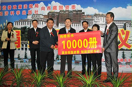 2012年7月23日,國(guó)務(wù)院國(guó)資委政策法規(guī)局、財(cái)政部經(jīng)濟(jì)科學(xué)出版社聯(lián)合向西藏自治區(qū)國(guó)資委捐贈(zèng)圖書(shū)儀式在拉薩舉行。西藏自治區(qū)副主席丁業(yè)現(xiàn)、國(guó)務(wù)院國(guó)資委政策法規(guī)局局長(zhǎng)周渝波、財(cái)政部經(jīng)濟(jì)科學(xué)出版社總編呂萍、西藏國(guó)資委書(shū)記次成甲措、副主任金思宇等出席了捐贈(zèng)儀式。