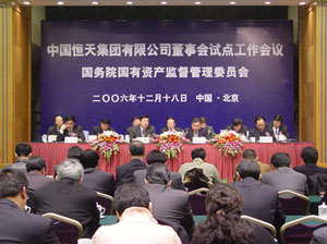 2006年12月18日,國務院國資委在京召開中國恒天集團有限公司(以下簡稱恒天集團)董事會試點工作會議。國務院國資委黨委副書記、副主任王勇出席會議。王勇代表國務院國資委向恒天集團外部董事頒發聘書,恒天集團與外部董事簽訂服務合約。隨后,王勇代表國資委就恒天集團董事會試點工作發表講話。恒天集團董事會有四位外部董事:周明臣、任傳俊、王振侯、高世星,非外部董事目前為四人,分別是:王天凱、常俊傳、劉海濤、楊永元,之后職工董事將由民主選舉產生。至此,恒天集團董事會試點工作正式啟動,恒天集團建立現代企業制度、完善法人治理結構工作進入了新階段。