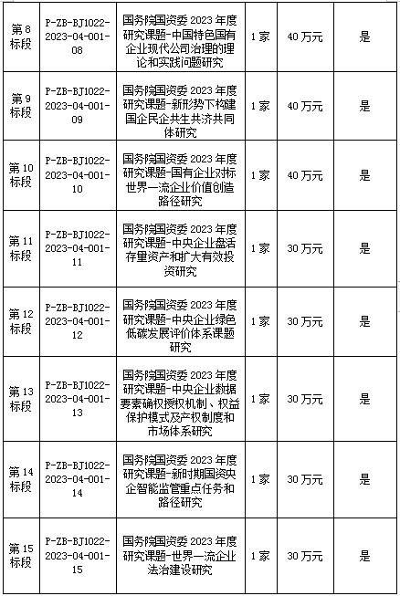 2.3 項(xiàng)目名稱:國(guó)務(wù)院國(guó)資委2023年度研究課題。
