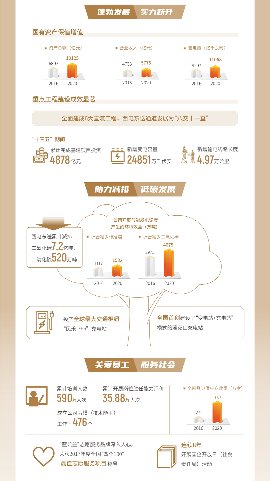 7月8日,南方電網公司《2020企業社會責任報告》(以下簡稱《報告》)正式發布,這是南方電網公司連續第14年發布企業社會責任報告,報告連續11年獲得五星級評價。《報告》顯示,2020年,南方電網公司售電量11068億千瓦時,同比增長5.2%,南方電網非化石能源裝機、電量占比分別達55.6%和53.2%,連續14年獲國務院國資委年度經營業績考核A級,在世界500強企業中排名第105位。一圖了解南方電網公司《2020企業社會責任報告》。