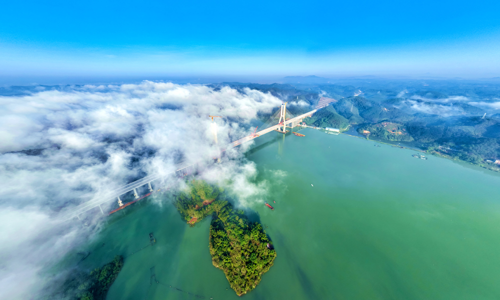 12月10日,由中國中鐵旗下中鐵交通投資建設、中鐵四局施工的廣西上(林)橫(縣)高速公路西津郁江特大橋主跨提前110天合龍。