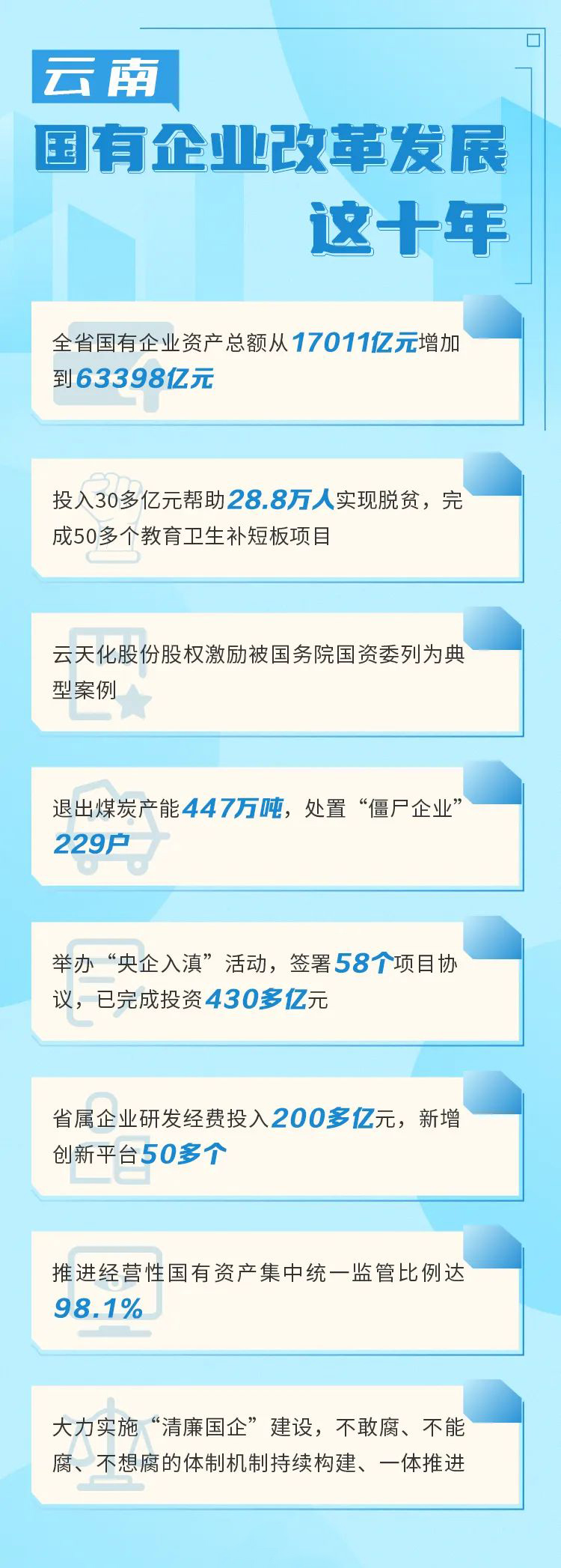 近年來,云南省國資系統先后開展國企改革攻堅戰和國企改革三年行動,解決了許多長期想解決而沒有解決的難題,國企改革取得了重大歷史性成就。