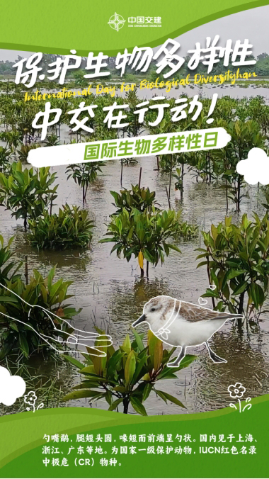中交廣航局承建的廣東陽江市程村灣藍色海灣綜合整治行動項目,建設內容為1200余畝紅樹林生境營造及修復。項目布置光灘作為鳥類棲息地,并設立標識標牌提醒,為勺嘴鷸等鳥類營造了安全、舒適的棲息環境。