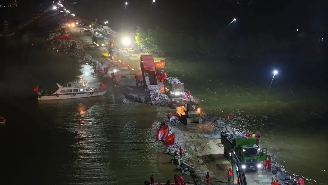直击中国安能洞庭湖决口封堵现...