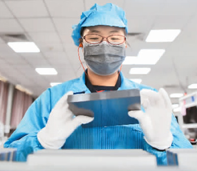 3月5日,阿特斯光伏電力(洛陽)有限公司的員工在硅片分選車間作業。