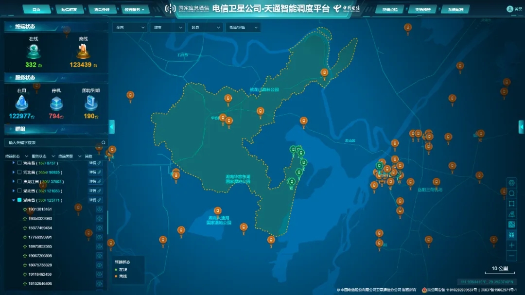 在搶險現場,中國電信帶來了一系列“黑科技”裝備:布設應急通信車,開通應急通信基站,讓決口封堵現場能夠實時與外界取得聯系;開通天通智能調度平臺,實現災區“一張圖”可視化指揮調度,確保精準、實時掌握華容縣及周邊地區衛星電話使用情況,提升應急指揮處突效率;通過處理哨兵、高分系列衛星遙感數據并生成SAR影像對湖南岳陽市湖泊、河流進行持續監測,時刻關注汛期內水面變化情況;網絡監控部門24小時監測衛星網絡運行,確保衛星通信資源隨需調度,確保緊急情況時的快速響應……