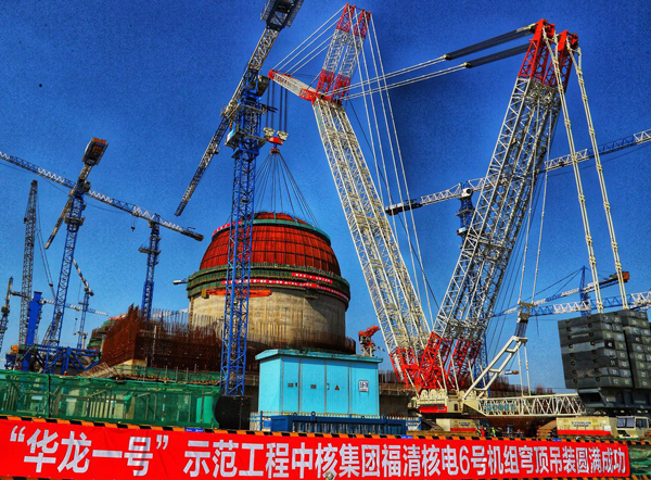 3月21日上午9時21分,華龍一號示范工程——中核集團福清6號機組提前10天實現穹頂吊裝。這是繼華龍一號全球首堆福清5號機組和海外首堆巴基斯坦卡拉奇2號機組實現穹頂吊裝后,全球第三臺、國內第二臺全面進入設備安裝階段的華龍一號核電機組,這將在全世界進一步點亮華龍一號這一國家名片,增強了“一帶一路”沿線國家對華龍一號的信心。