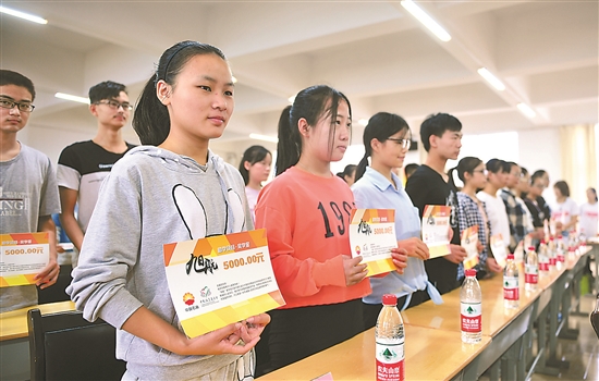圖為助學項目為考入一本院校的旭航學子發放獎學金。 邊蕾 攝
