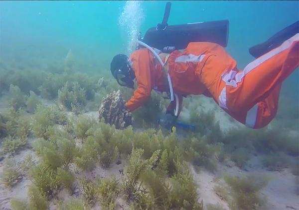 哈電集團(tuán)迪拜哈斯彥項(xiàng)目現(xiàn)場(chǎng)人員正在進(jìn)行珊瑚移植作業(yè)。