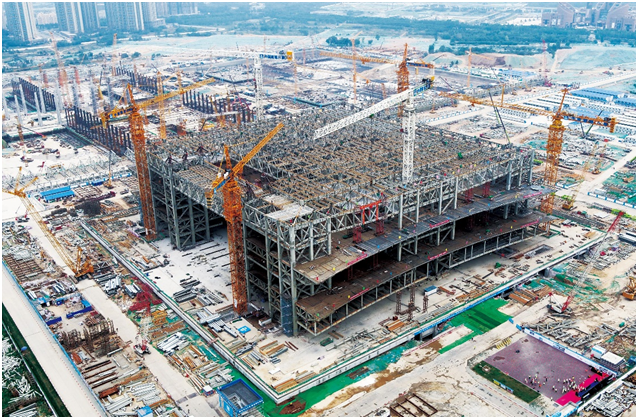 2018年5月,西安國際會展中心會議樓鋼結構施工中,其用鋼量遠超鳥巢和埃菲爾鐵塔