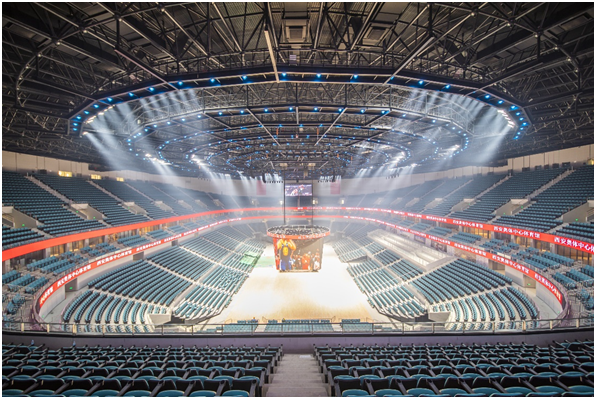 西安奧體中心體育館地面可實現快速冰籃轉換,場地中央設有全國最大最先進的斗屏系統,可為觀眾帶來絕佳觀看體驗