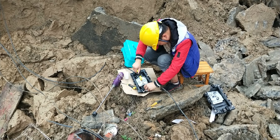 7月9日上午,柴桑區(qū)永安到港口段匯聚環(huán)中斷。維護(hù)人員傳回消息:港新大道因山洪暴發(fā)造成山體滑坡,大段桿路被泥石流撞擊損毀,十余條光纜被壓傷壓斷并掩埋于石土堆中。接到消息后,黨員先鋒崗、傳輸維護(hù)員彭德斌火速帶領(lǐng)搶修施工隊前往現(xiàn)場進(jìn)行緊急救援。經(jīng)過長達(dá)5個小時不間斷地?fù)屝蓿罱K恢復(fù)匯聚環(huán)業(yè)務(wù)。