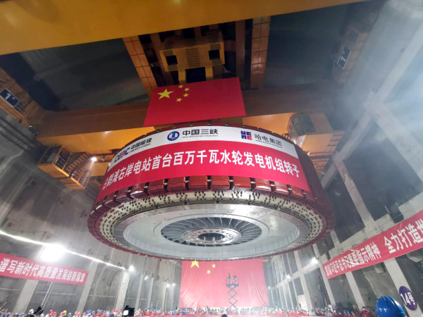 9月9日16時(shí)33分,由哈爾濱電氣集團(tuán)有限公司(簡(jiǎn)稱“哈電集團(tuán)”)研制的白鶴灘右岸電站首臺(tái)百萬(wàn)千瓦水輪發(fā)電機(jī)組轉(zhuǎn)子順利吊入機(jī)坑。至此,世界單機(jī)容量最大的白鶴灘水電站右岸首臺(tái)(14號(hào)機(jī))轉(zhuǎn)子實(shí)現(xiàn)成功吊裝,標(biāo)志著白鶴灘電站工程建設(shè)進(jìn)入全面總裝階段。