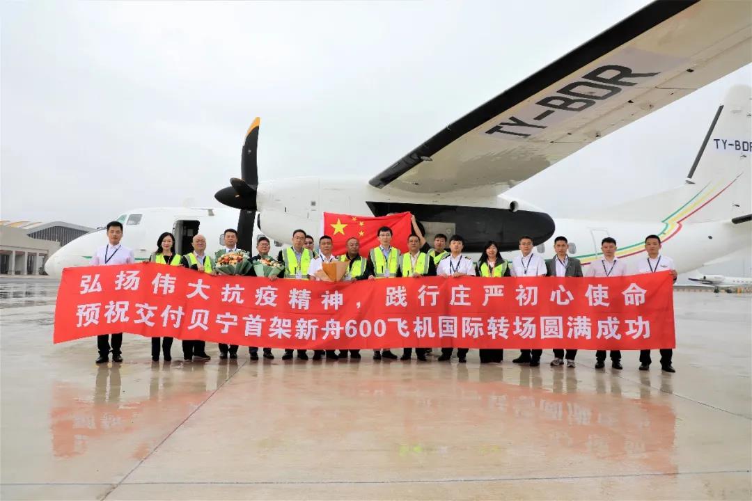 交付轉場工作劃分為國內段與國外段。9月23日10時09分,“新舟”600飛機在完成飛行前全部準備工作后,從閻良機場順利起飛,經過3個多小時的飛行,于13時47分冒雨安全平穩地降落在昆明長水國際機場。9月27日,飛機在昆明再次起飛走出國門。此次飛行全程13600余千米,途經孟加拉、印度、巴基斯坦、阿聯酋、沙特、埃塞俄比亞、盧旺達、剛果金、喀麥隆,最后抵達貝寧科托努國際機場。