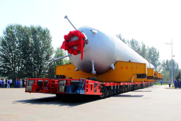 圖為運往吊裝現場的國產化百萬噸級煤液化反應器。