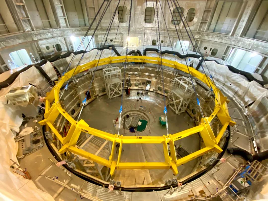 杜瓦下部冷屏的吊裝成功,為后續重力場支撐、超導饋線、極向場線圈、校正場線圈等重要安裝工作的相繼全面展開奠定了堅實基礎,拉開了2021年主機設備安裝的序幕。