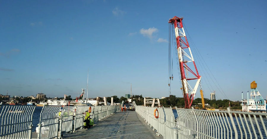 日前,經(jīng)過前期兩個多月的不懈努力,中國船舶集團旗下中船應(yīng)急承建的肯尼亞蒙巴薩人行浮橋正式建成通行。