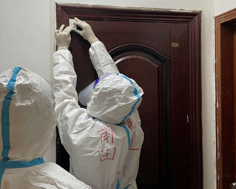 此時福建天氣異常炎熱,他們穿著密閉防護服不到半小時,里面的衣服就已經濕透。為了節(jié)省防護服,他們在安裝過程中盡量不喝水、不進食、不上廁所。19日晚,他們終于完成了轄區(qū)60個門磁設備的配送安裝任務。