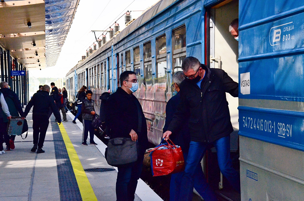 正在上下車的旅客