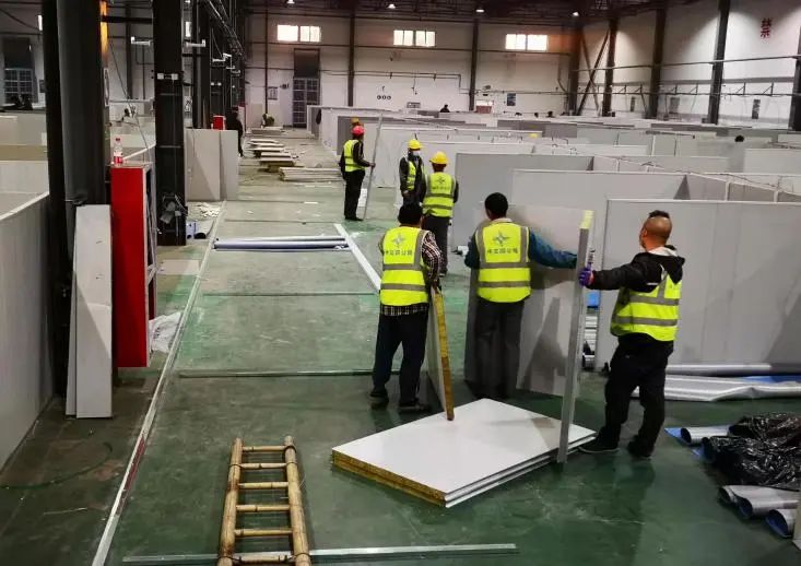 4月2日下午,建設團隊火速集結328人隊伍在當日晚8點投入建設共青方艙醫院。該方艙醫院面積4000平方米,可容納床位432個。目前電箱基礎、放線、場地清理破土等工作及醫護一脫二脫更衣室集裝箱拼裝已順利完成,隔離倉、生活配套設施完成90%,強弱電、給排水、消防系統、通風排煙系統完成80%,醫療生活廢棄物處理站等配套設施施工完成50%。