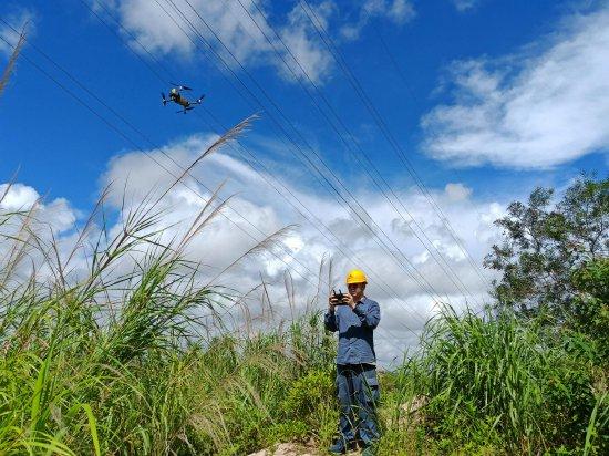 南方電網廣東汕頭供電局輸電管理所工作人員采用無人機進行線路特巡特維