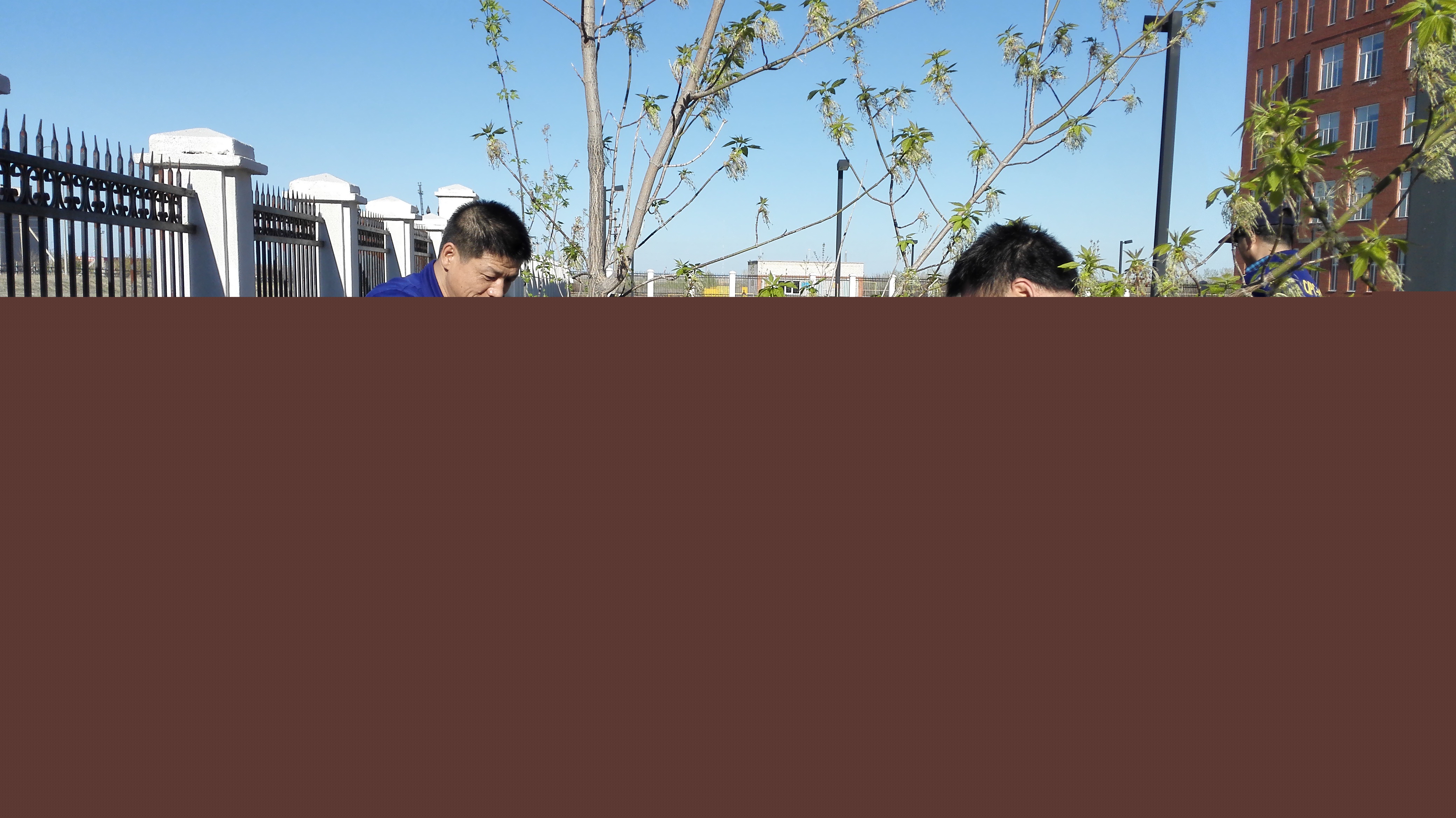 王巖峰與同事們利用業余時間植樹,綠化環境