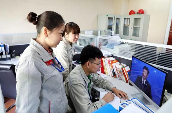 中國石化管道公司天津處員工觀看博鰲論壇習主席演講。