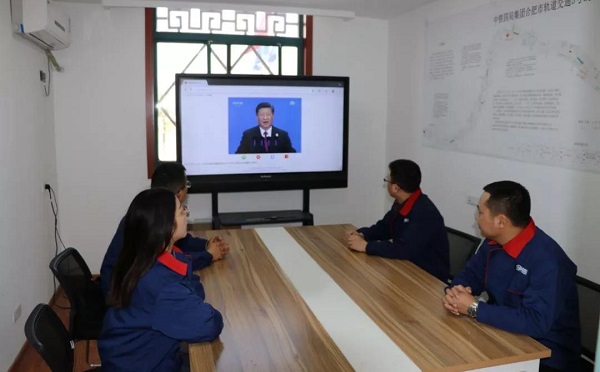 中國鐵建莫斯科地鐵項目員工在當地凌晨集體在線觀看直播。習主席強調“中國開放的大門不會關閉,只會越開越大”,鼓舞著代表中國地鐵走進歐洲的中國建設者。
