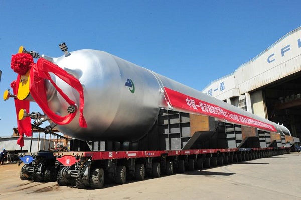 2018年4月11日,由中國(guó)一重承制的世界最大石化技術(shù)裝備---鎮(zhèn)海沸騰床渣油鍛焊加氫反應(yīng)器在大連核電石化公司完工發(fā)運(yùn)。該裝備的成功制造標(biāo)志著我國(guó)超大噸位石化裝備制造技術(shù)再次領(lǐng)跑?chē)?guó)際,彰顯了“大國(guó)重器”的實(shí)力。同時(shí),為中國(guó)石化產(chǎn)業(yè)的蓬勃發(fā)展增添了新的動(dòng)能。
