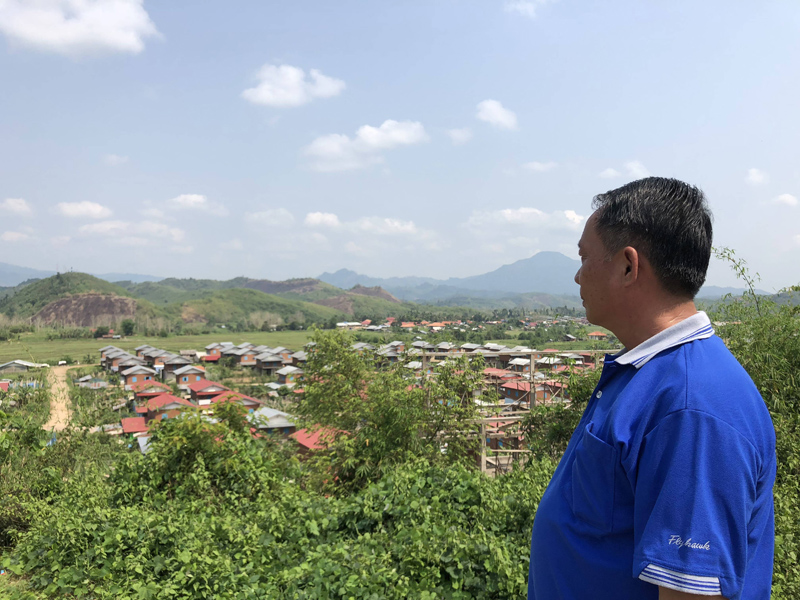看著遠處安置點庫區(qū)移民搬進的新房子,老撾南塔河1號水電站項目團隊成員露出了開心的笑容。林丹丹 攝