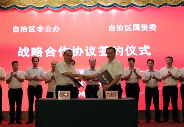 洽談會(huì)上,廣西國(guó)資委與廣西非公辦簽訂戰(zhàn)略合作協(xié)議,雙方表示將發(fā)揮各自職能作用,依法整合各方資源,協(xié)調(diào)推進(jìn)國(guó)有企業(yè)資產(chǎn)優(yōu)化工作,協(xié)調(diào)有關(guān)部門解決合作項(xiàng)目建設(shè)和運(yùn)營(yíng)中出現(xiàn)的具體問題,推進(jìn)國(guó)企民企合作項(xiàng)目盡早落地,實(shí)現(xiàn)國(guó)企民企優(yōu)勢(shì)互補(bǔ)和互利共贏,推動(dòng)混合所有制經(jīng)濟(jì)邁上新臺(tái)階。