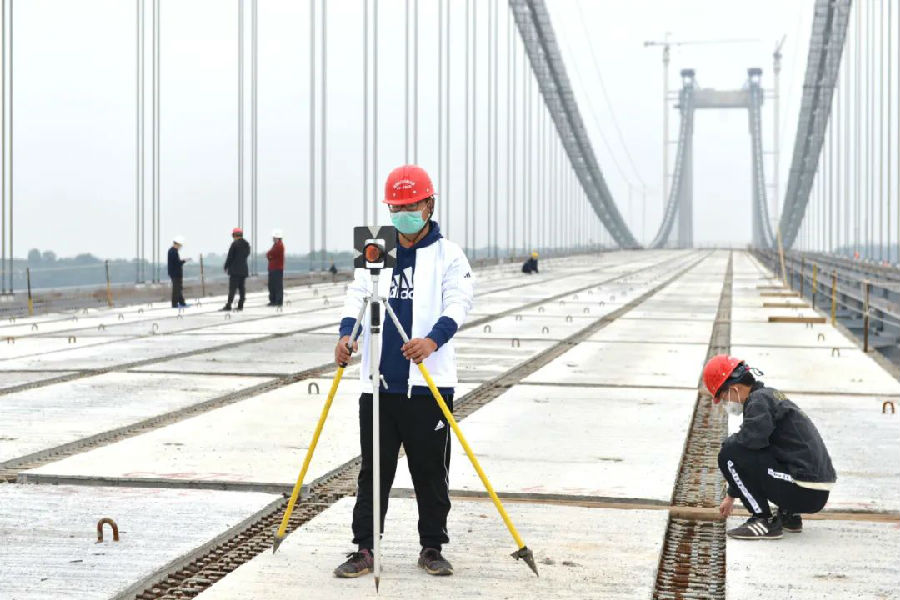湖北交投集團投資建設的白洋長江公路大橋項目工地,首批返崗的橋面施工作業隊正在進行橋面板吊裝焊接施工作業。這是繼赤壁長江大橋建設項目復工后,湖北交投又一個復工的長江大橋項目。