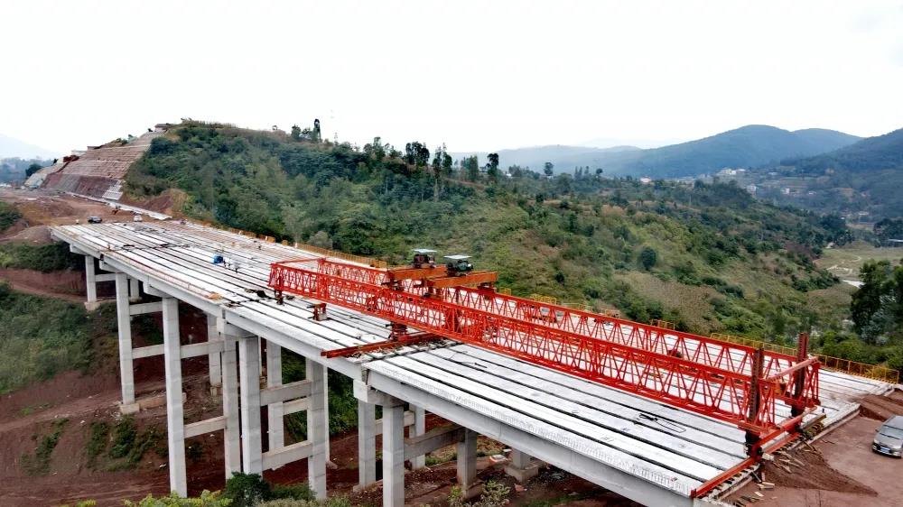 10月9日至10日,楚大高速公路第一總承包部大村大橋右幅、瓦苴里2#大橋右幅T梁相繼吊裝完成,標志著兩座橋梁全幅貫通。