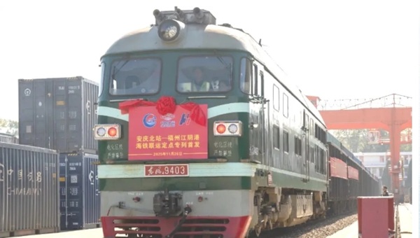 11月26日,“安慶北站—福州江陰港”海鐵聯(lián)運(yùn)定點(diǎn)專列正式首發(fā)。專列滿載48個40英尺集裝箱貨物,跨越千里抵達(dá)福州江陰港后,將高效銜接對臺海運(yùn)班輪,實(shí)現(xiàn)貨物的快速中轉(zhuǎn)。福州港海鐵聯(lián)運(yùn)首次直達(dá)安徽腹地市場,為貫通陸海通道、深化區(qū)域協(xié)作邁出堅(jiān)實(shí)步伐。