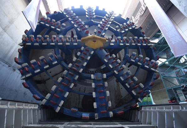 本次使用的“筑夢號”盾構機是北京城建集團有限責任公司(簡稱北京城建集團)針對該工程長距離全斷面密集卵礫石地層掘進的特點,專門采購的全新高性能輻條式土壓平衡盾構機,刀盤直徑為9.04米,主機長11.9米,整機總長120米,總重量達1409噸,是北京城建集團自北京地鐵5號線率先引入盾構法施工以來,所擁有的最大的盾構機。區別于以往城市地鐵6米直徑盾構機,超過8米直徑盾構機在國內市域快速軌道交通盾構隧道施工領域的應用,有望成為未來發展趨勢。