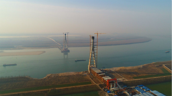 在北岸主塔施工過程中,大橋建設者們先后攻克了超厚粉細砂地層長大鉆孔灌注樁施工、大型承臺水下封底施工及大體積混凝土防開裂等技術難題,順利完成了北岸主塔封頂目標。據目前進度,大橋南岸主塔也將在4月初封頂,預計2019年底建成通車。
