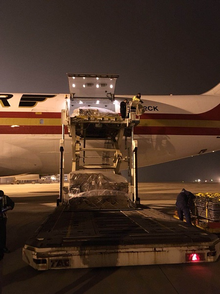 4月5日凌晨2時44分,康尼航空從芝加哥飛至武漢的K4848大型波音747全貨機航班,載著16噸價值400萬美金的長江存儲的精密儀器安全平穩的降落在武漢天河機場貨機坪上,機場工作人員迅速組織按預定方案卸載長江存儲精密儀器,并通過綠色通道順利完成該批精密儀器貨運保障工作。