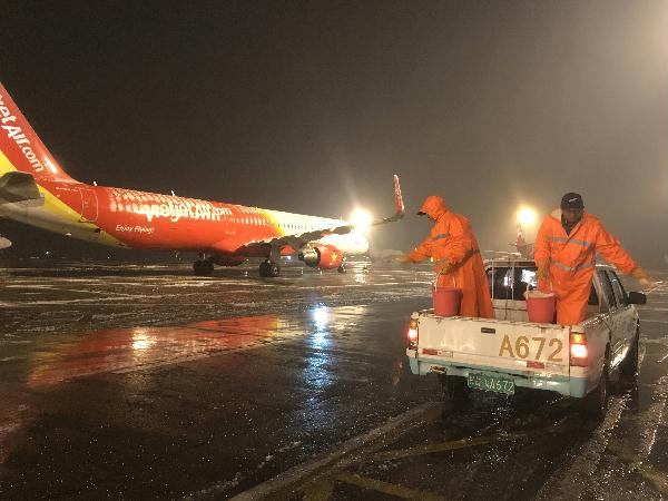 一是航空器除冰雪。機務工作人員24小時堅守崗位不間斷為飛機除冰雪,共出動了10輛除冰車、2輛加液車,大雪期間累計除冰近300架次,保障人員出動近800人次,消耗除冰液130多噸,防冰液20多噸。
