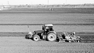 河北省唐山市農業園區的農民駕駛農機在田間播種花生。李秀清攝/光明圖片