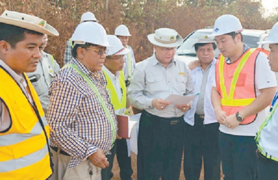 圖為中國路橋工程師與緬甸工程師在施工現場考察。 (中國路橋工程有限責任公司供圖)