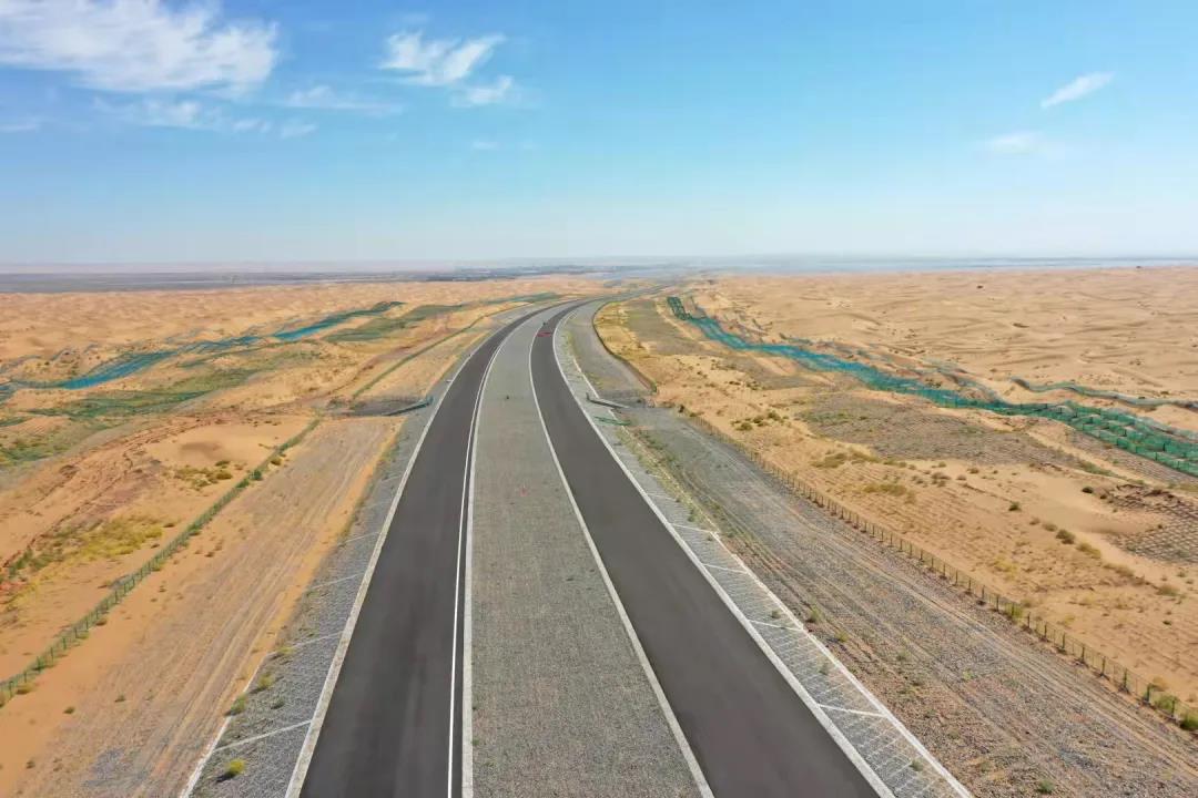 然而,施工現場白天溫度高,水分蒸發快,如果不采取保濕措施,壓好的路基含水率很快就大打折扣。為此,項目團隊繼續攻關,嘗試邊碾壓邊覆蓋土工布的方法,并及時做好防風封層措施,達到了鎖水保濕的作用?!?8公里的路基,相較常規的灑水法施工,我們節約了將近150多萬立方米用水量,相當于當地1萬畝地一年的灌溉用水量。”王盛興介紹道。