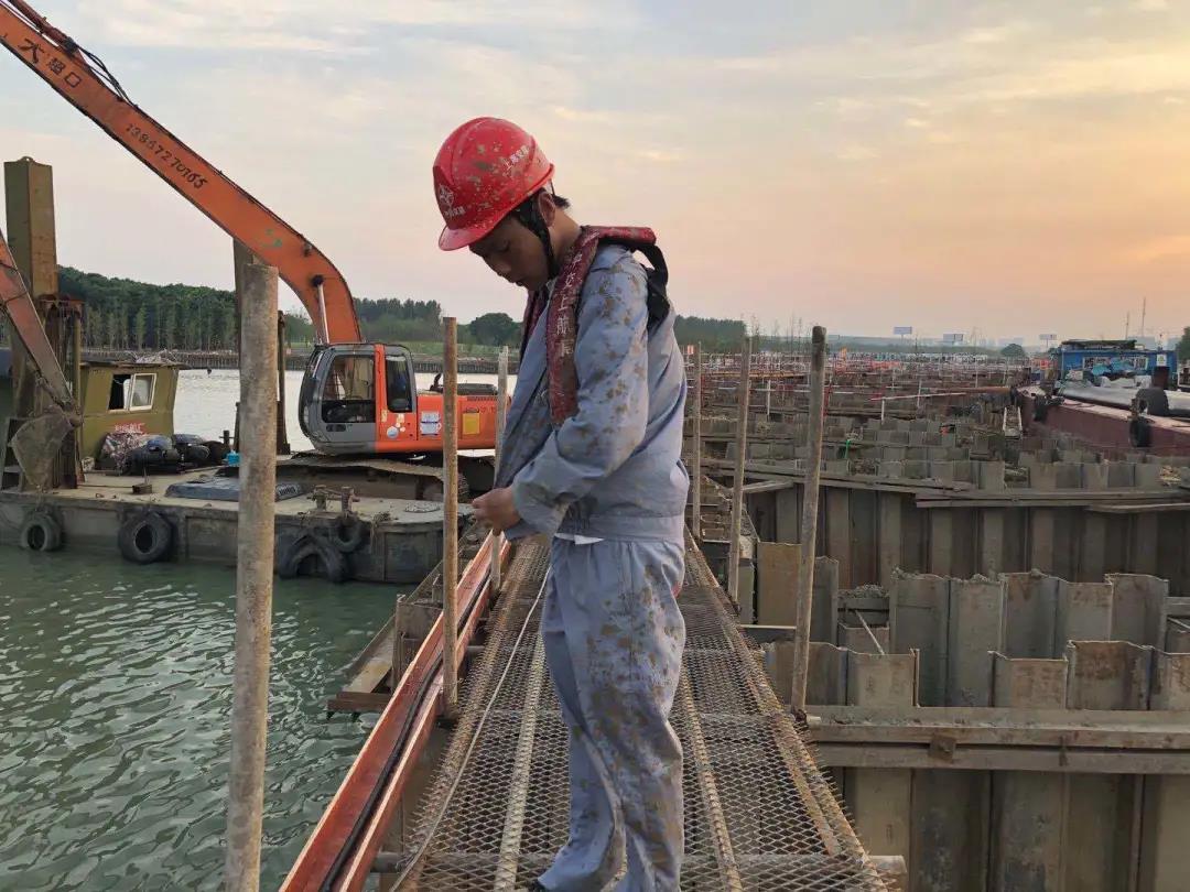 彭謙是今年項目部新進的員工,還沒來得及適應,就投入到了貫通橋的施工現場。中交集團所屬中交上航局承建的江蘇吳江元蕩貫通橋項目是助力長三角地區一體化發展的重要工程。建設者將架起一座跨越元蕩湖,連接蘇州吳江和上海青浦的慢行貫通橋。施工工期僅有三個月。項目部加大設備和人員投入日夜施工、交叉施工,確保項目保質保量推進。最高峰時,現場有200多名工人、6臺挖機、19條船同時作業。彭謙接到的第一項任務,便是接鋼管樁。