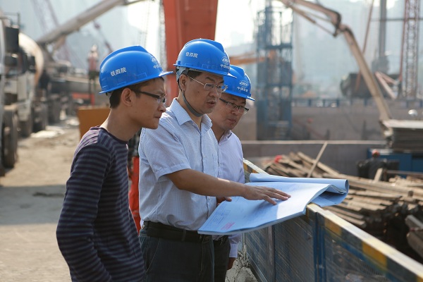中國勘察設(shè)計大師、鐵四院副總工程師肖明清(中)