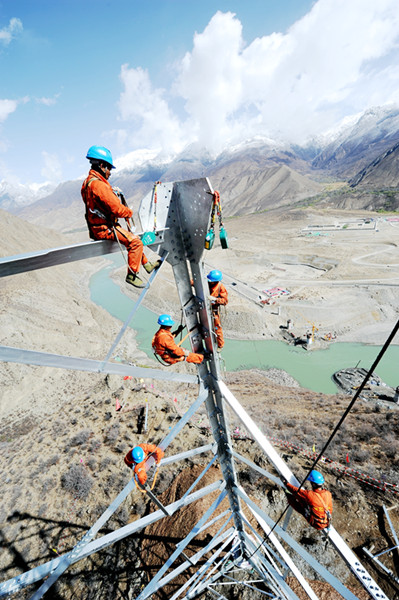 湖北送變電公司承建藏中聯(lián)網(wǎng)工程500千伏雅中變電站(包7)、拉薩至林芝段500千伏線路工程(包25)和臥龍變500千伏配套線路工程(包9)等3個(gè)部分。自2016年年初開(kāi)工,該公司以黨建領(lǐng)航工程建設(shè),百名黨員沖鋒在前,帶領(lǐng)千名施工人員躬耕雪域高原,揮灑青春汗水,用實(shí)際行動(dòng)服務(wù)重點(diǎn)工程,服務(wù)藏區(qū)百姓。