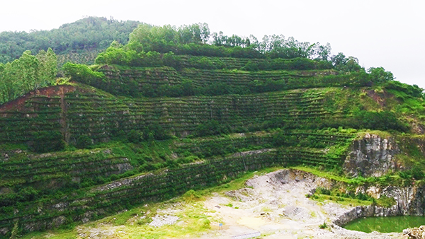 為保證苗木的存活率,項目專門設計了噴灌系統,利用坑底的積水池進行蓄水,經過濾后由加壓灌溉系統進行噴灌,并由專人定期對復綠現場進行維護、管理,確保了復綠成效。