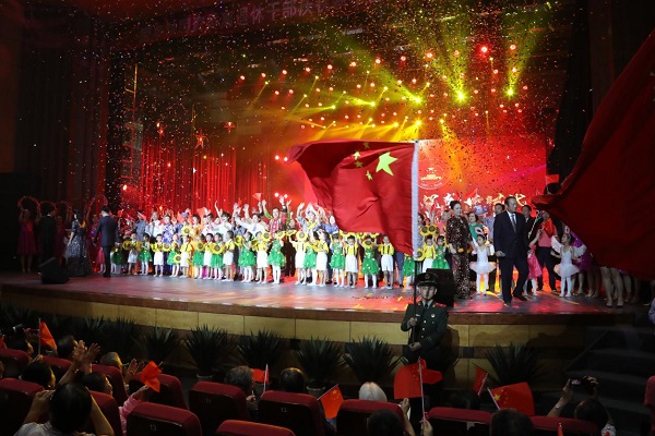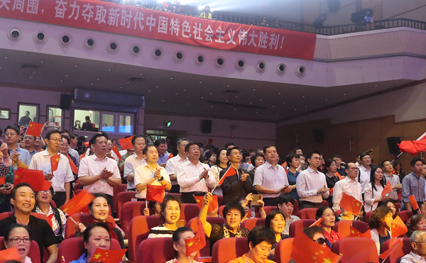 文藝演出以慶祝中華人民共和國成立70周年為主線,分為“回望歷史”“筑夢未來”兩個篇章,通過歌舞、合唱、朗誦、情景表演等多種形式,頌揚了國資國企戰(zhàn)線廣大干部職工在新中國建設發(fā)展歷程中作出的歷史性貢獻。歌舞《再唱映山紅》、合唱《在太行山上》、情景表演《繡紅旗》《紅梅贊》等節(jié)目,生動再現(xiàn)了中國共產黨帶領中國人民譜寫的一首首氣吞山河的壯麗史詩;歌伴舞《追夢青春》、舞蹈《舞動中國》、朗誦《時代英雄》等節(jié)目,深情詮釋了一代又一代國資國企人以身許國、努力拼搏的奮斗人生;合唱《共筑中國夢》、舞蹈《不忘初心》等節(jié)目,深刻展現(xiàn)了廣大離退休干部和在職干部職工愛黨愛國、深沉厚重的家國情懷。演出最后,全體演員和現(xiàn)場觀眾合唱《歌唱祖國》,將全場氣氛推向高潮。