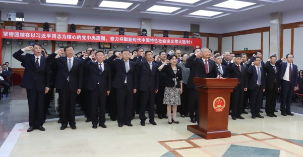 郝鵬講話指出,向憲法宣誓,是榮譽、是責任、是諾言。他要求大家永遠銘記誓言、忠實踐行誓言,切實發揮好表率作用。要做忠于憲法、忠于祖國的表率,在帶頭遵守憲法、弘揚憲法中樹牢“四個意識”、堅定“四個自信”、做到“兩個維護”;做依法履職、依法監管的表率,依法依規行權履職,推動國資監管加快實現從管企業向管資本的根本性轉變;做恪盡職守、擔當作為的表率,力戒形式主義、官僚主義,以釘釘子精神推動國資國企發展改革監管和黨的建設不斷取得實實在在的成效;做奉公守法、清正廉潔的表率,切實做到依法用權、秉公用權、廉潔用權,堅決做忠誠干凈擔當的國資衛士、為民務實清廉的人民公仆,堅定不移做強做優做大國有資本,加快培育具有全球競爭力的世界一流企業,為實現“兩個一百年”奮斗目標、實現中華民族偉大復興中國夢作出新的更大貢獻。